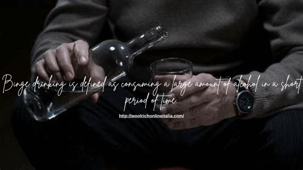 Binge drinking is defined as consuming a large amount of alcohol in a short period of time, typically enough to bring a person’s blood alcohol concentration (BAC) to 0.08% or higher. This usually equates to five or more drinks for men and four or more drinks for women within two hours.